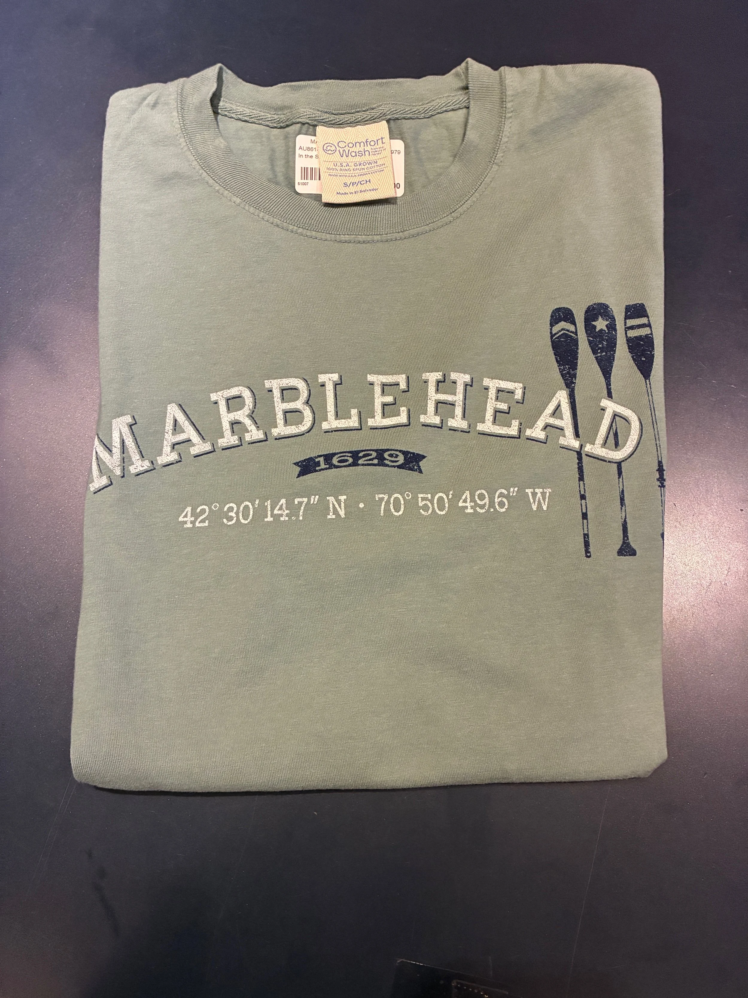 In celebration of this place we call home, we carefully select a handful of hats, t-shirts, and sweatshirts to offer our customers who are looking to fold a piece of town into their wardrobe. Certainly, many of these items are sold during the summer to those seeking an escape from the city or a picturesque getaway vacation, but native Marbleheaders snap them up just as quickly.